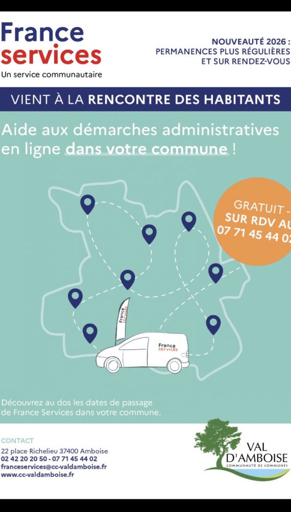 Dates d’Itinérance France Services pour la commune de Limeray pour le 1er trimestre 2026 : les 3ème mardis de chaque mois suivants : Mardi 20 janvier 2026 de 9h30 à 12h00 Mardi 17 mars 2026 de 9h30 à 12h00 Mardi […]